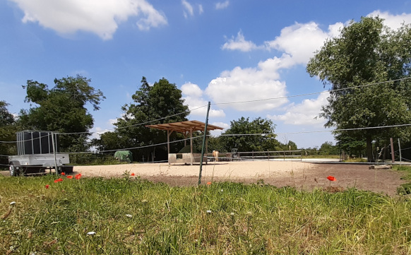 Für die praktische Arbeit stehen im Sommer ein Reitplatz (19 x 38 m) sowie eine Reitwiese und im Winter ein Picadero (ca. 14 x 14 m) zur Verfügung.
